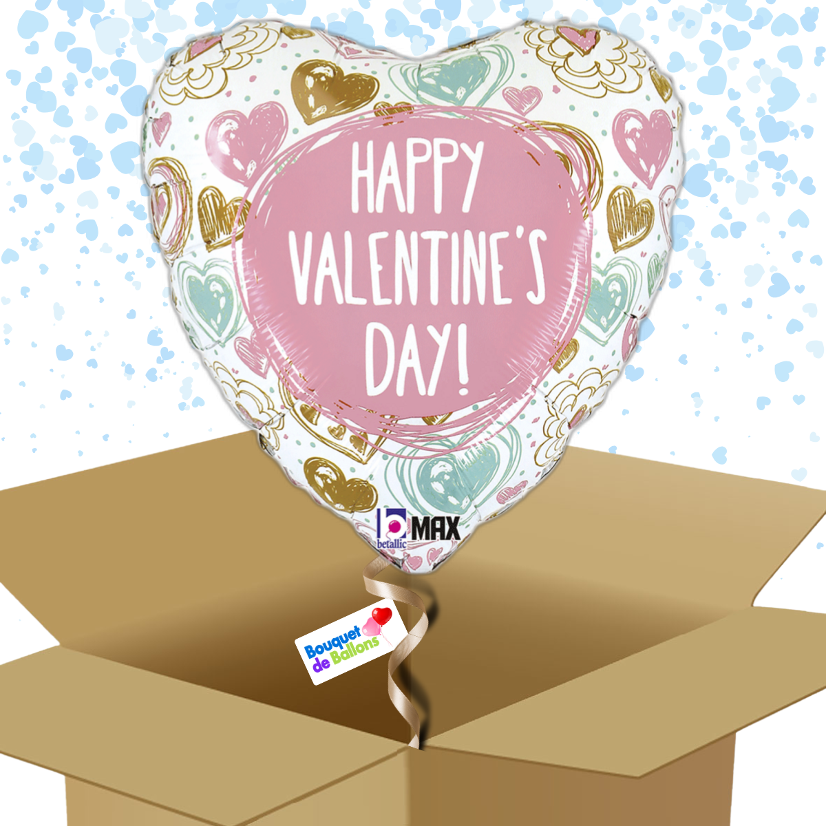 Ballon Cœur rose doré et bleu – « Happy Valentine’s Day »