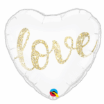 – Ballon Cœur blanc et or « love » 46 cm env. gonflé à l’hélium