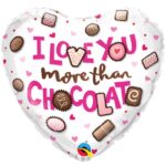 Ballon Cœur – « I Love You More Than Chocolate » avec coeurs et chocolats