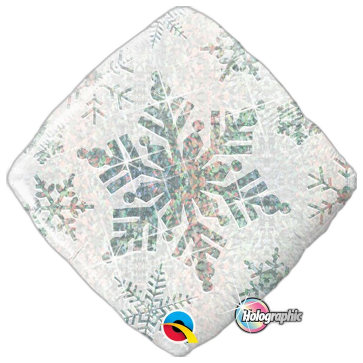 – Ballon losange avec des motifs flocons de neige blancs holographiques imprimés sur fond blanc 46 cm env. gonflé à l’hélium