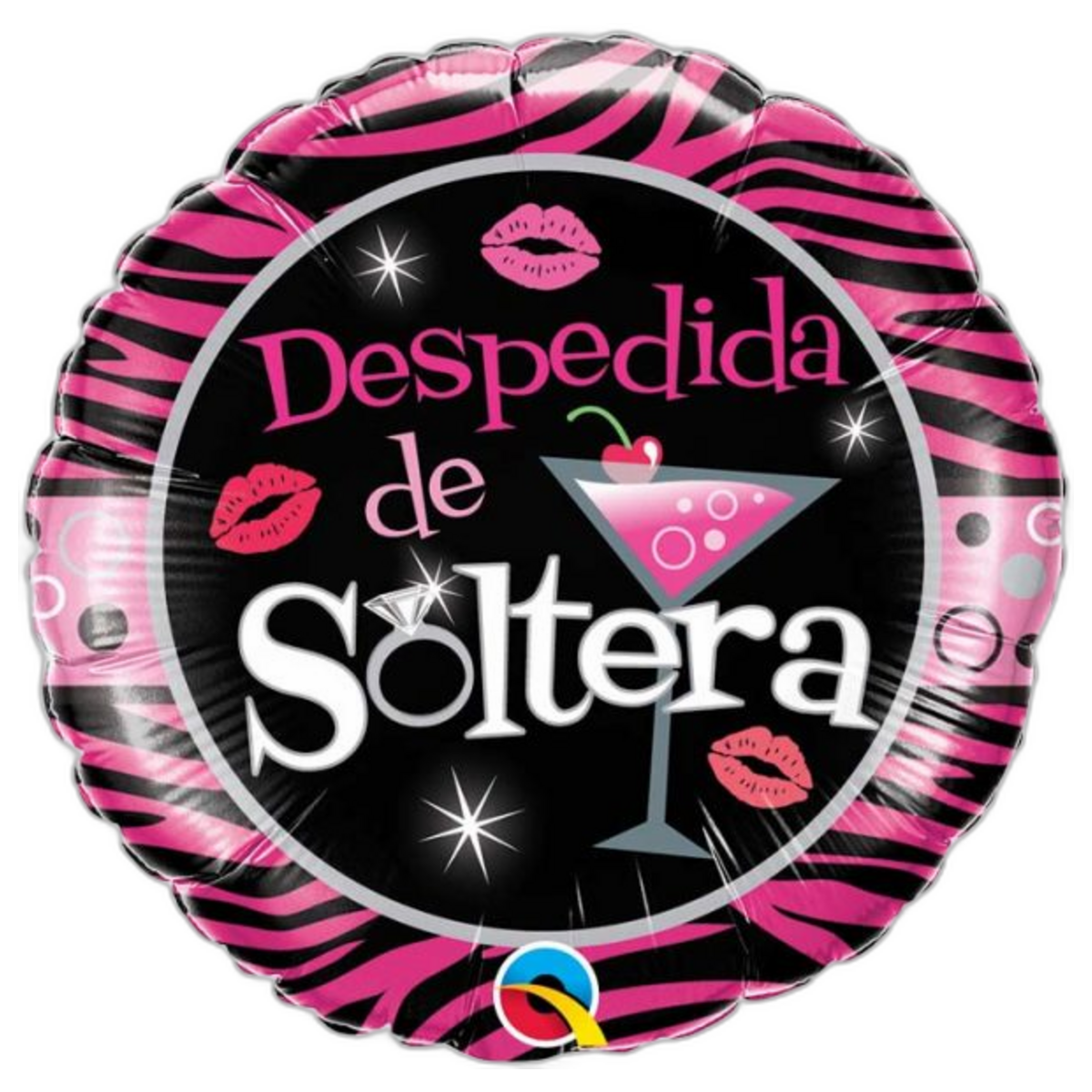 – Ballon rond blanc imprimé « Despedida de Soltera » avec motifs rayés sur un fond noir 46 cm env. gonflé à l’hélium