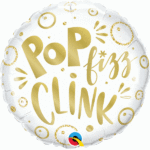 Ballon Rond – « Pop fizz Clink » avec bulles dorées